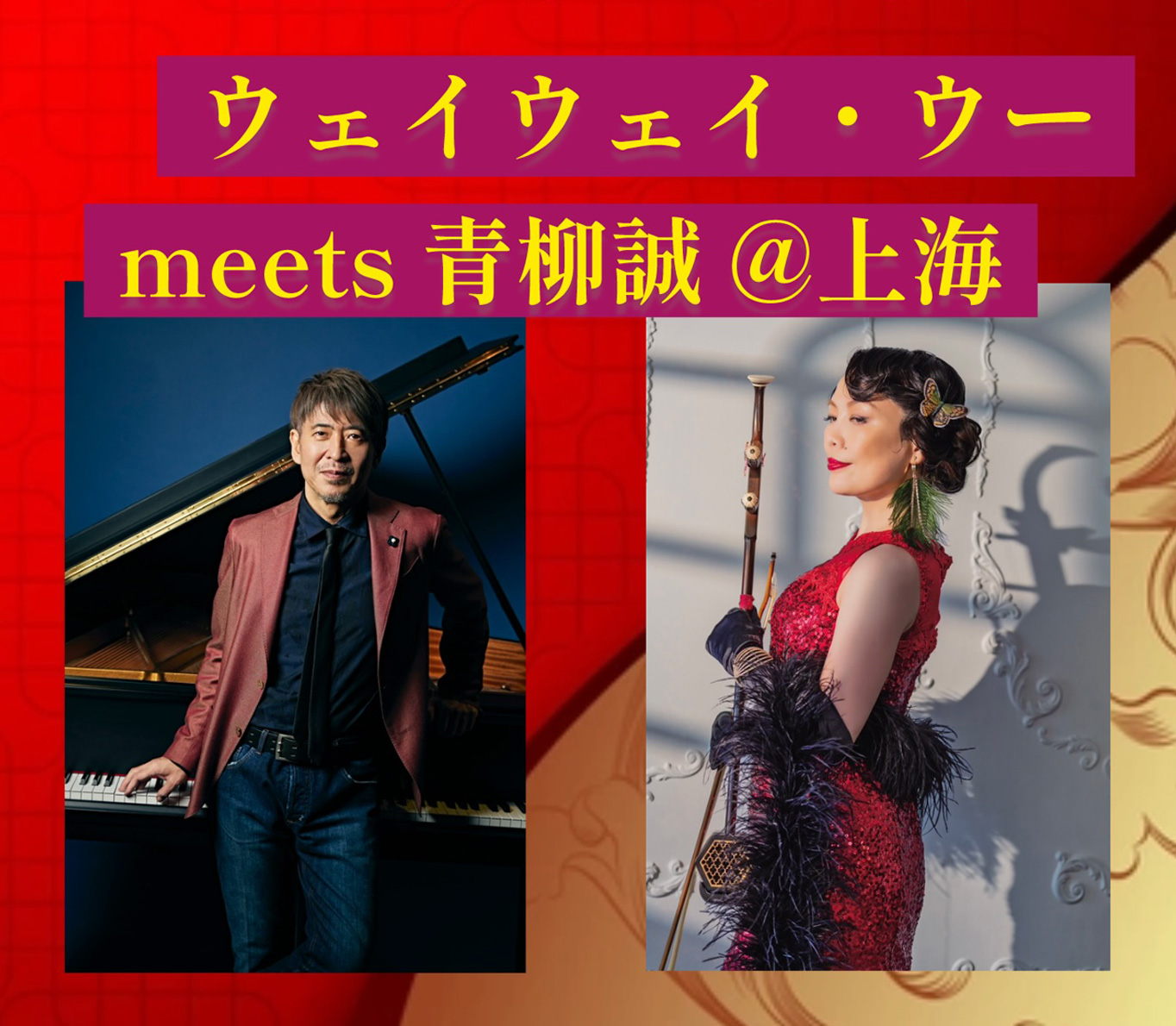 時間:開場19時、開演19時半 - 出演:ウェイウェイ・ウー(二胡)、青柳誠(ピアノ)
