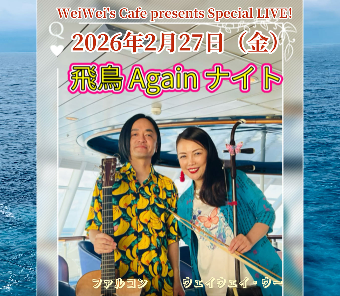 時間:19:00開場/19:30開演 - 出演:ウェイウェイ・ウー(二胡)、ファルコン(Gt)